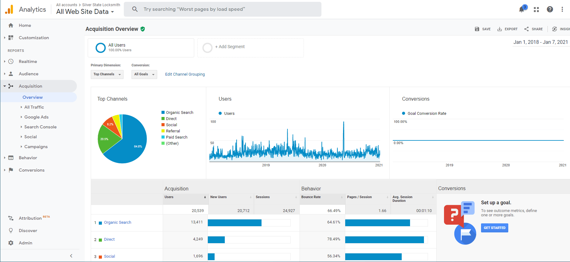 At the end of 2016, we met Mike German with Silver State Locksmith. Initially, the areas we helped him with included a new website, the same one he uses today. We built hundreds of directory citations and did his local search engine optimization. Within the first 90 days, we steadily had this company in the top three positions for valuable keywords in the local map pack. Google AdWords was another core component for their first year although with the amount of organic traffic they were getting within the first year they were able to completely eliminate buying paid traffic while still seeing increases in overall call volume.